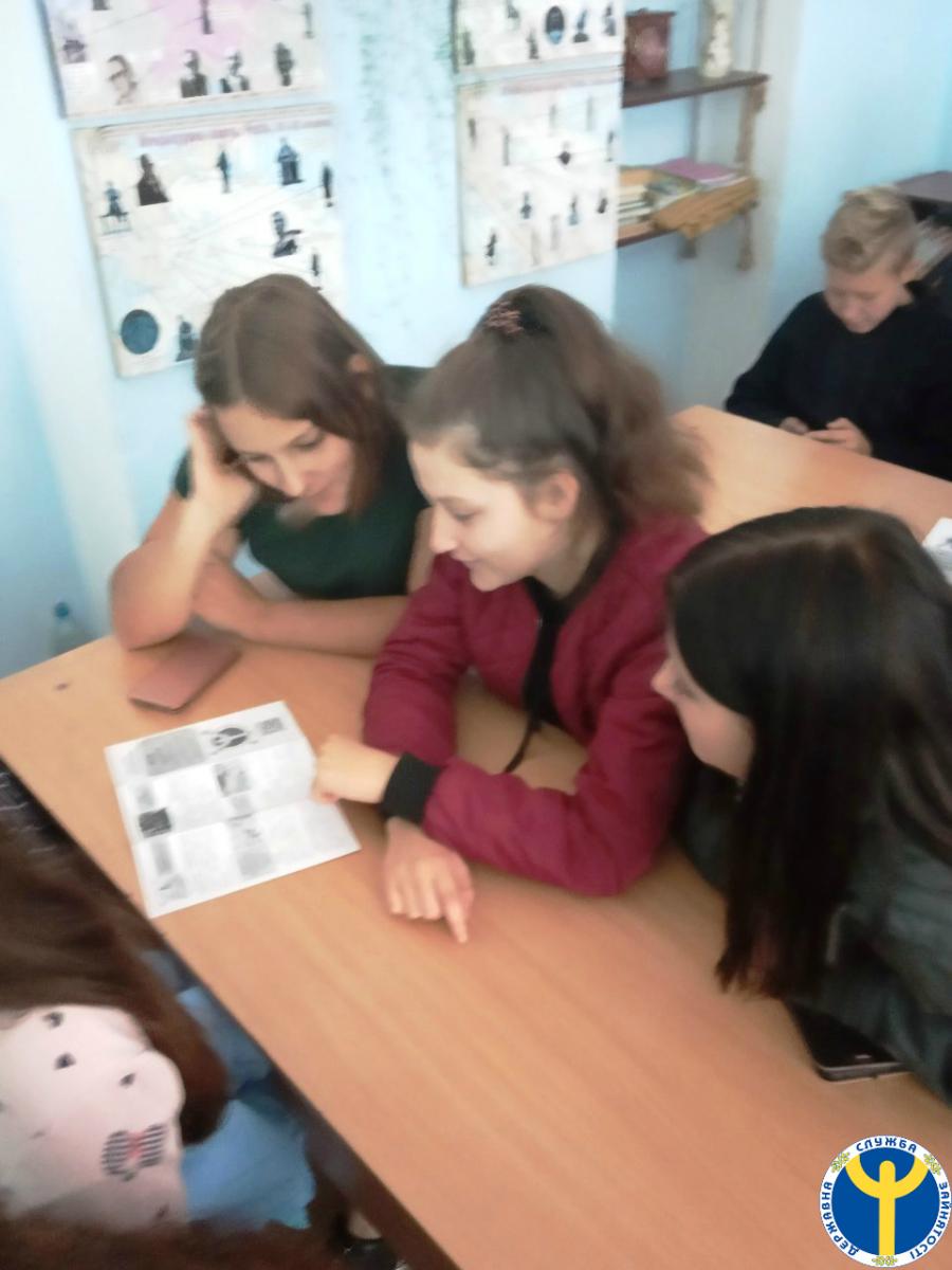 Упродовж профорієнтаційного уроку начальниця відділу активної підтримки безробітних Наталія Демченко презентувала учням послуги служби зайнятості, проінформувала про стан ринку праці в районі, звернула увагу на те, що при виборі майбутньої професії, потрібно враховувати затребуваність серед роботодавців. Ознайомила дітей з формулою правильного вибору професії «Хочу-можу-треба». Також відбулося обговорення нового проекту державної служби зайнятості онлайн платформи з профорієнтації «МОЯ ПРОФЕСІЯ: консультаційна мережа».