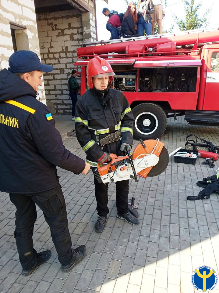 Вогнеборці продемонстрували пожежно-рятувальне обладнання, що є на озброєнні у пожежній частині, розповіли про його застосування під час ліквідації пожеж та інших надзвичайних ситуацій. Під час акції діти могли відчути себе у ролі справжніх рятувальників, примірявши бойовий одяг та спорядження.