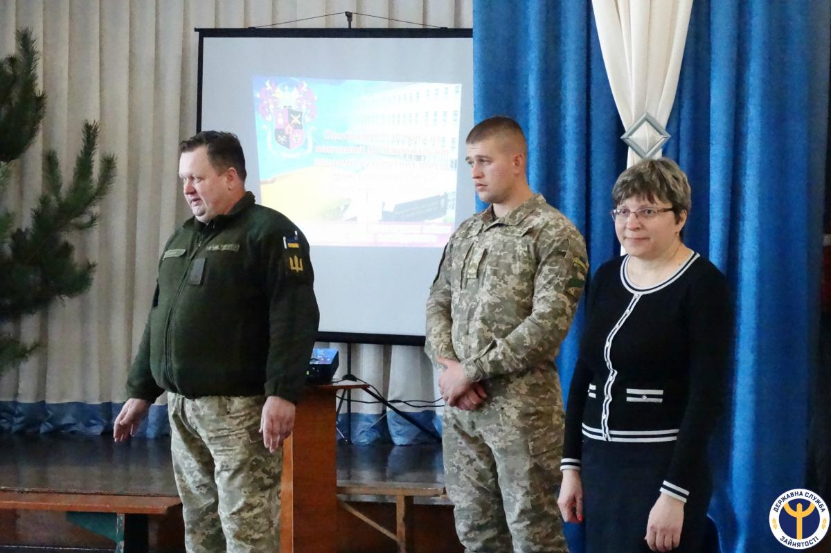 Тимчасово виконуючий обов'язки військового комісара Канівського об'єднаного міського військового комісаріату Валентин Сивак поінформував старшокласників про порядок та умови вступу до Академії, а психолог Юлія Зозуля розповіла про особливості психологічного відбору.Також присутні ознайомилися з можливостями служби зайнятості, послугами та новими електронними сервісами.