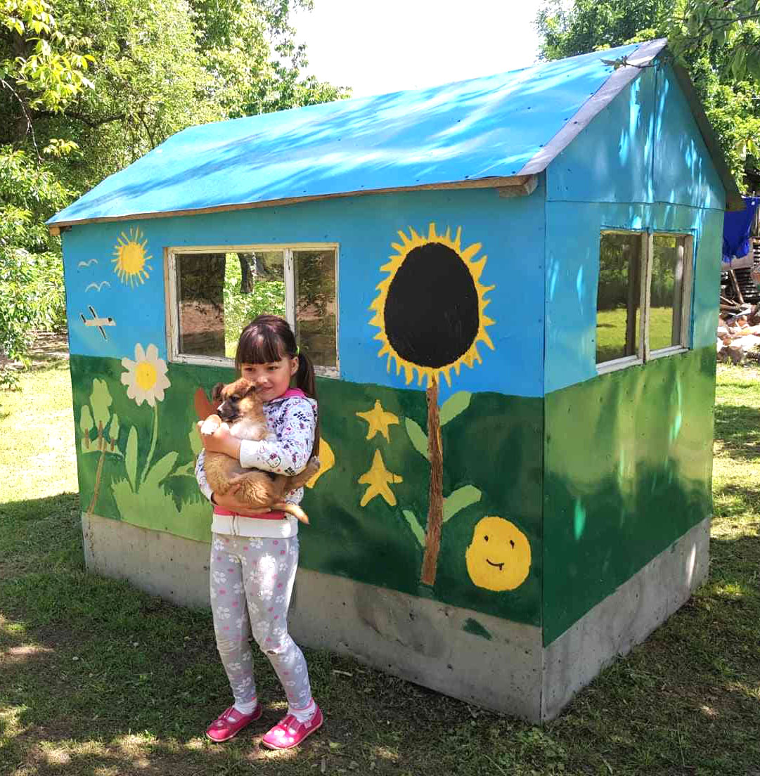 Житель Монастирищини Володимир Чуйковський на цей час навчається за направлення районної філії обласного центру зайнятості на «Електрозварника ручного зварювання» у державному навчальному закладі «Монастирищенський професійний ліцей». Володимир батько 6-річної доньки. Особливо під час карантину вистачає достатньо часу, щоб здійснювати дитячі мрії.  За цей період батько змайстрував для доньки затишний, яскраво прикрашений, казковий і головне – власний будиночок. За словами подружжя Чуйковських, майстрували із того, що було в господарстві, лише фарбу придбали, щоб яскраво розмалювати дім. Фарбували та розмальовували всі разом. Одну зі стін прикрасили кольоровими відбитками долонь. Донька з великим задоволенням тепер багато часу проводить у своїй хатинці з улюбленими іграшками та песиком. Здійснення дитячої мрії стало вкотре підтвердження батьківської любові та турботи.