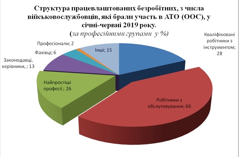 З початку 2019 року послугами обласної служби зайнятості скористалися 809 безробітних з числа військовослужбовців, які брали участь в антитерористичній операції та операції об’єднаних сил, з них 100 осіб з інвалідністю. Допомогу по безробіттю отримували 749 учасників АТО (ООС).