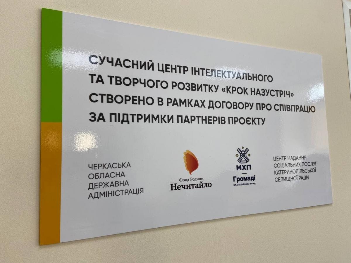На початку червня в селищі Катеринопіль відкрили сучасний Центр інтелектуального та творчого розвитку «Крок назустріч». Його створено на базі відділення денного перебування територіального Центру надання соціальних послуг Катеринопільської селищної ради. Заклад створено з метою надання послуг людям з інвалідністю, пенсіонерам, а також людям, які опинилися в складних життєвих обставинах, для підтримки їх активності та фінансової самостійності.