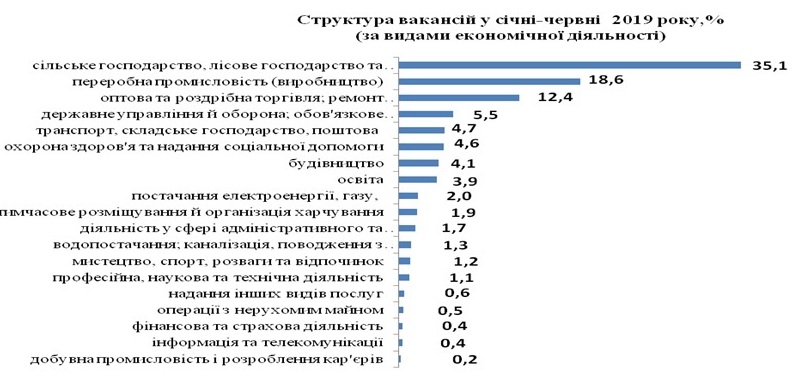 Станом на 1 липня 2019 року у базі даних обласної служби зайнятості налічувалося 1376 вакансій. Крім того, у базі даних служби зайнятості містилася інформація про 743 пропозицій роботи, отриманих з інших джерел.