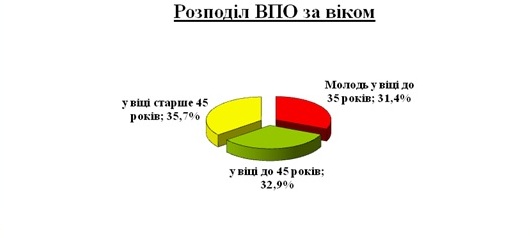 Безробітними з числа переселенців є, у переважній більшості, представники жіночої статі (72,9%). Вікова структура безробітних з числа ВПО є наступною: частка молоді у віці до 35 років серед переселенців становить 31,4%, питома вага осіб віком до 45 років – 32,9%, старше 45 років – 35,7%.