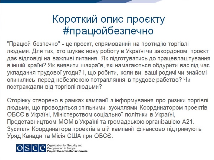 З нагоди відзначення Всесвітнього дня боротьби з торгівлею людьми Міністерством соціальної політики України у співпраці з Координатором проєктів ОБСЄ в Україні, Представництвом МОМ в Україні - Агенством ООН з питань міграції, Громадською спілкою "А21 Україна" 30 липня 2020 року заплановано проведення інформаційної кампанії в обласних центрах України та м. Києві.