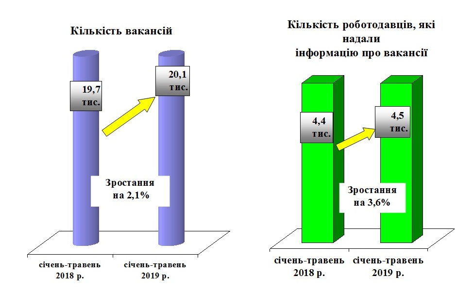 З початку 2019 року кількість роботодавців, які співпрацювали з центрами зайнятості та філіями, зросла на 3,6% та становила понад 4,5 тис. осіб. Кількість вакансій у базі даних обласної служби зайнятості зросла на 2,1% до 20,1 тис. одиниць. З початку року до центрів зайнятості області та філій надійшло 19,6 тис. вакансій.