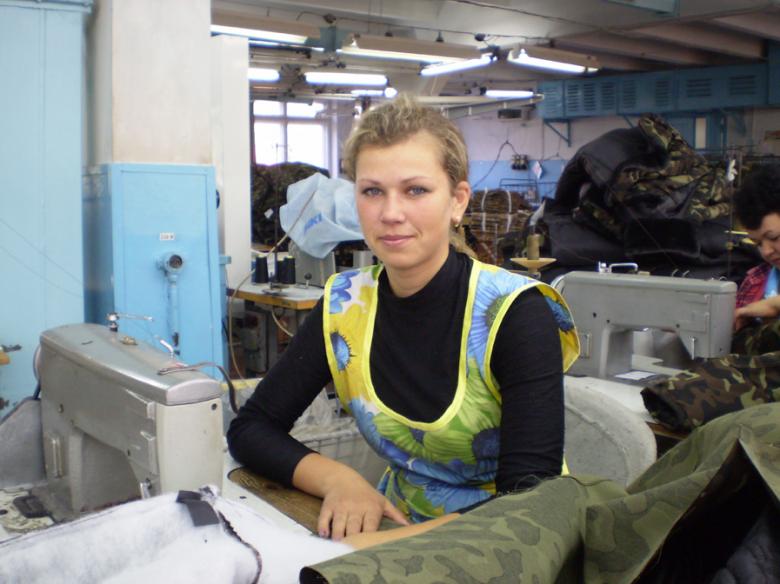 Моя нова знайома - білява, синьоока, тендітна, мила дівчина на ім’я Оксана (прізвище Шкарупа – Авт.) зі щирою посмішкою та сумними очима. Зовні вона – молода, абсолютно здорова людина. Насправді ж Оксана має інвалідність. Вона не чує, як співають птахи, як хлюпоче вода в річці, як говорять люди. Дівчина не може передати словами те, що думає і відчуває, бо не може говорити. Оксана глухоніма. Обділивши її слухом і мовою, доля щедро нагородила іншим – оптимізмом та хистом до вишивки, шиття і малювання. З часом улюблена справа, яка завжди була для Оксани відрадою та втіхою, переросла у професію. Нині вона працює швачкою на Чернігівському учбово-виробничому підприємстві УТОГ. Саме у швейному цеху ми з нею і познайомилися. Оксана вправно пришивала підкладку фуфайки до верха, а я захоплено спостерігала за нею. Відчувалося, що ця молода швачка добре знає свою справу:рухи рук були, як “на автоматі”.